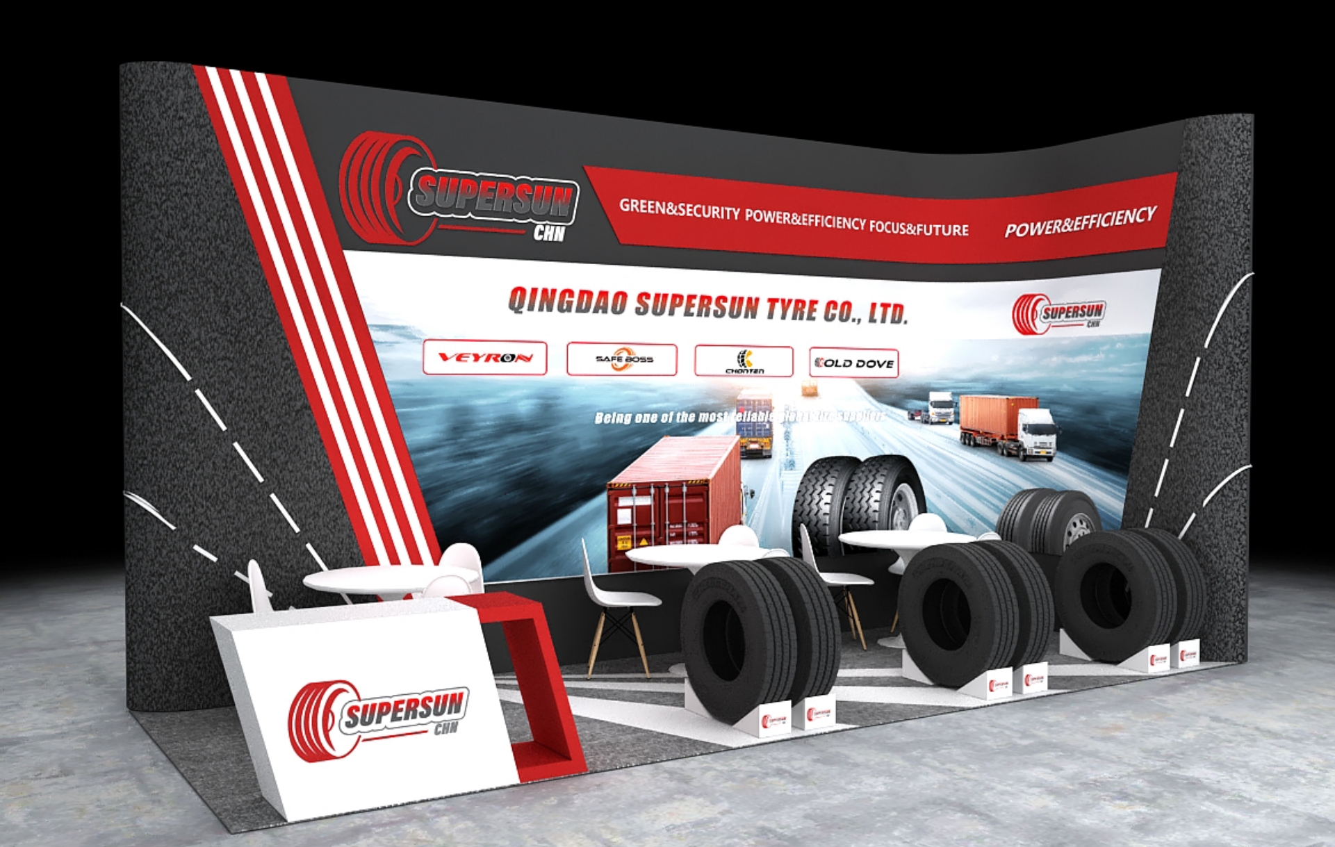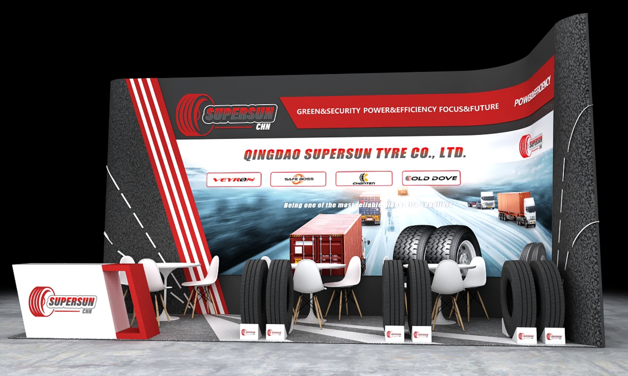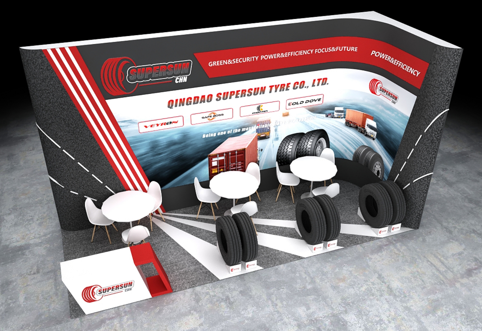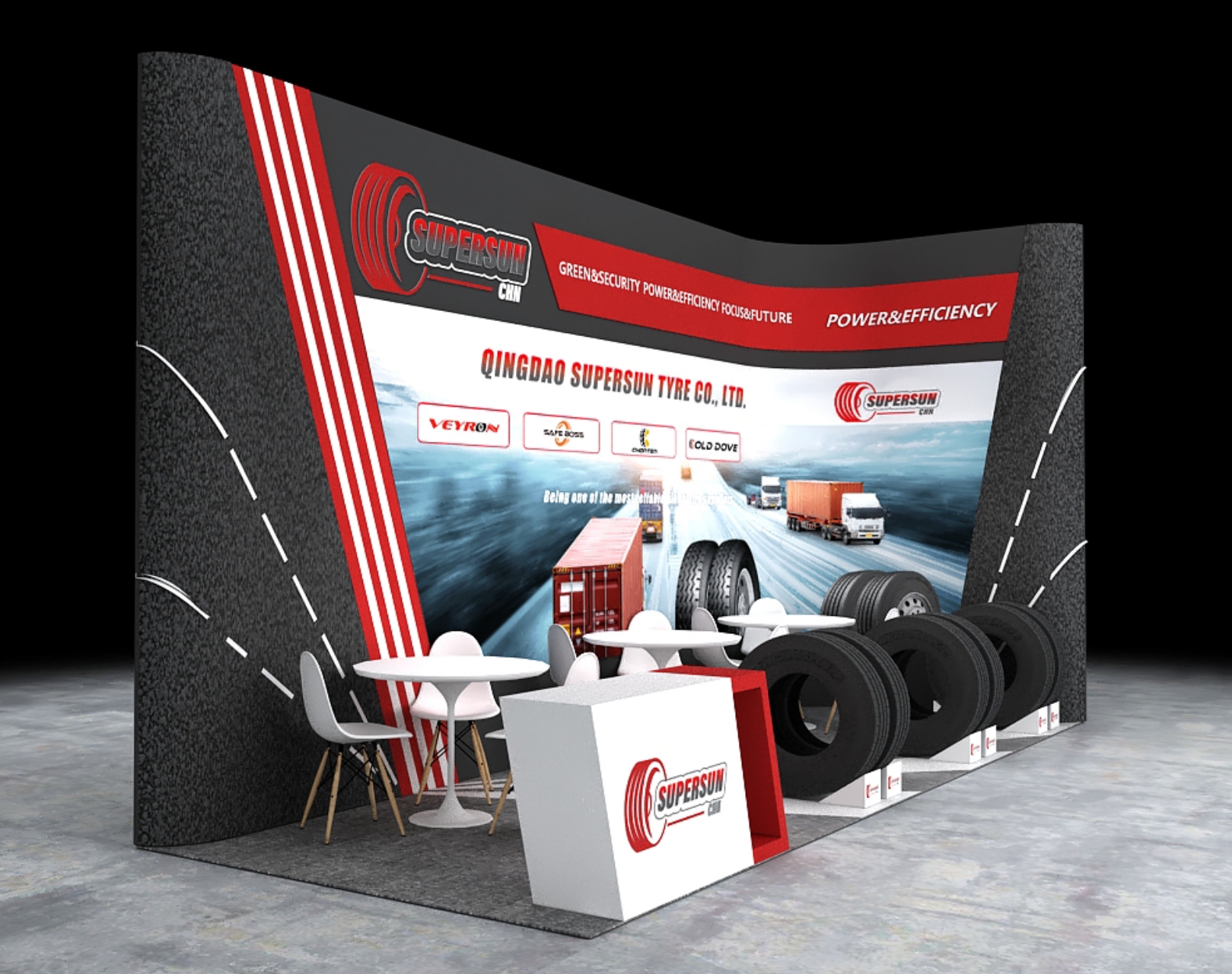 理展臺(tái)設(shè)計(jì)風(fēng)格:簡約大氣,重點(diǎn)突出輪胎展示性能!